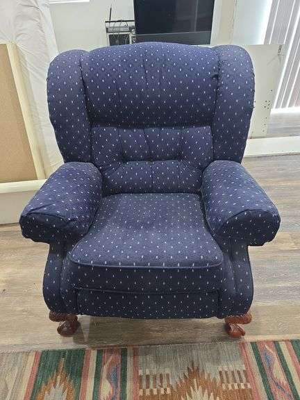 LOT 17 - Lane furniture Blue upholstered claw foot recliner