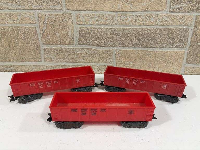 LOT 50 - 3 - Marx Rolling Stock Gondolas; Pennsylvania #347100 (2 white lettering and 1 black)