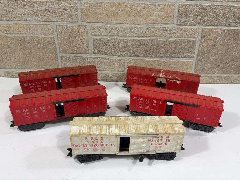 LOT 56 - 5 - Marx Rolling Stock Operating Box Cars; (4) Marlines #249319, SERX #5595