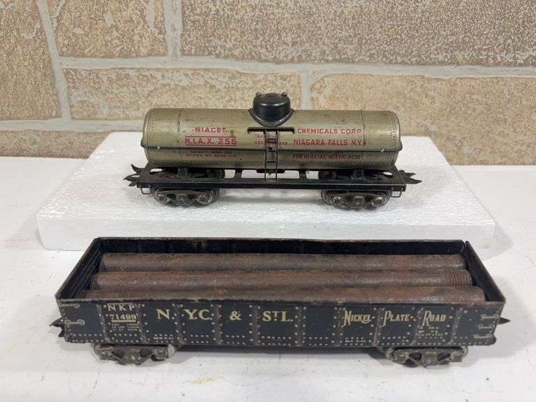 LOT 118 - 2 - Marx Tin Rolling Stock; Nickel Plate Road NYC & StL NKP #71499 Gondola, Niacet NIAX #256 Tank Car